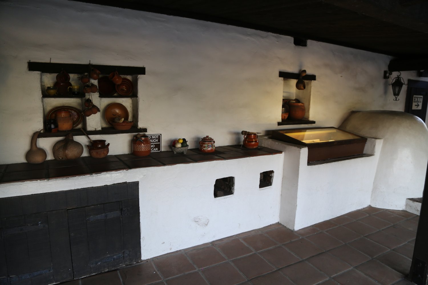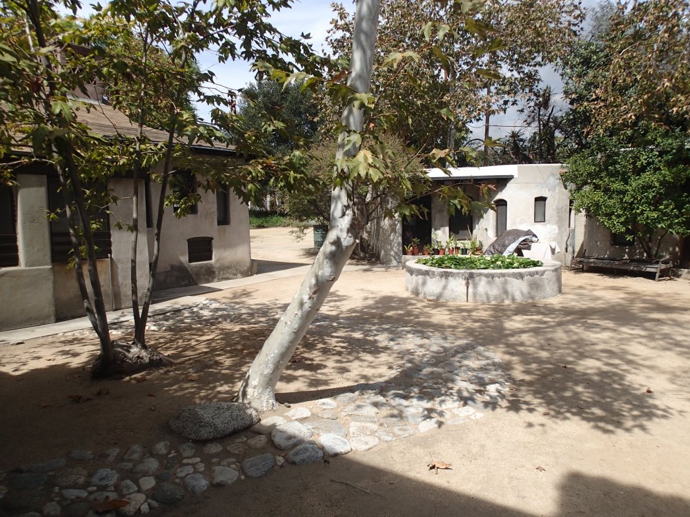 The walls of the adobe are really thick – up to 3 feet in width, and are made of sun baked mud. One interesting historical tidbit is the part the La Brea Tarpits played in the construction. Tar was taken from these pits (Wilshire Blvd now runs in front of the tarpits), was mixed with rocks and horse hair and was used as a sealant on the wooden beams holding up the roof. Clay from the Los Angeles River was also used in the construction.