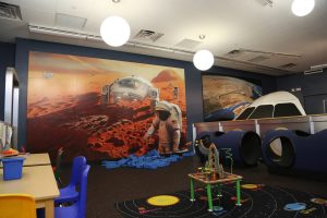Select rooms and exhibits include Bunnies Bookstore (where stories are read or children can read basic books including books about Jewish faith), the Blue Bagel Cafe where children learn about foods from around the world, a Culture Club featuring cultural events weekly, a tiny replica Synagogue, a Light and Shadow room where with the press of a button children can temporarily brand their shadow to the wall, an older Ambulance in a room where children can play doctor, a “water section” containing a raft used during Hurricane Katrina and an Art room where kids can express their creative interests (note to parents, this room can get quite messy!).