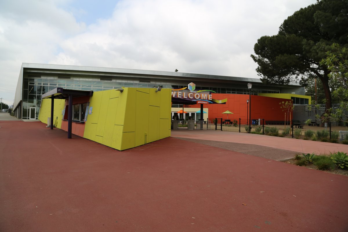 is located on the corner of 1301 Avenida Cesar Chavez and Collegian Ave in Monterey Park on the campus of East Los Angeles College. Address: 1301 Avenida Cesar Chavez. Parking is about a block and a half down Collegian Ave in the multi-level parking garage.