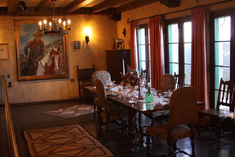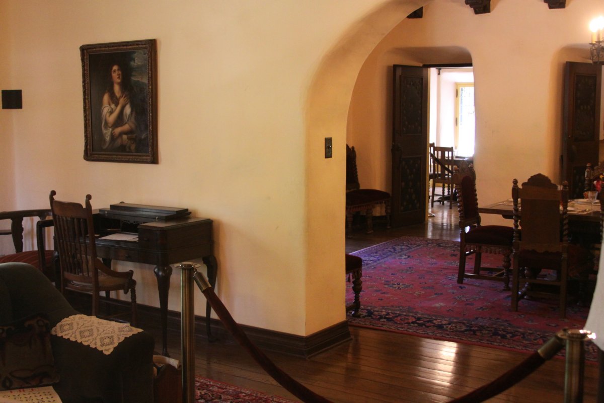 William Hart knew and was friends with many influential people during his day. One of them, a lady who was an avid pilot, flew over his estate very low to the ground. Mr. Hart copied down some identification numbers off the plane and complained to local authorities. Turns out the pilot was Amelia Earhart and she and Mr. Hart soon became friends after he was introduced to her. The house was built in the 1920’s and the decorations are reflective of that period with a number of paintings by well known western artists, gifts from famous actors and personalities (including a bear’s skin and head from Will Rogers – the only “animal trophy” in the house as Mr. Hart loved animals) and a number of native American treasures.