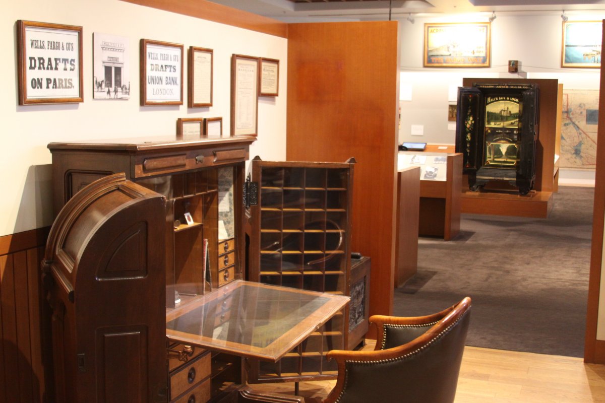 is located on the first floor of the “Wells Fargo Center” located on Bunker Hill in downtown Los Angles at 333 S. Grand Ave. Enter from either Grand Ave (through the small open air plaza) or from Hope Street up stairs on the corner of Hope and Grand. This is one of several Wells Fargo museums located in specific cities mostly on the West coast of the USA. Admission is free. Located near Angels Flight and just down the street from the Broad Museum and the Walt Disney Concert Hall.