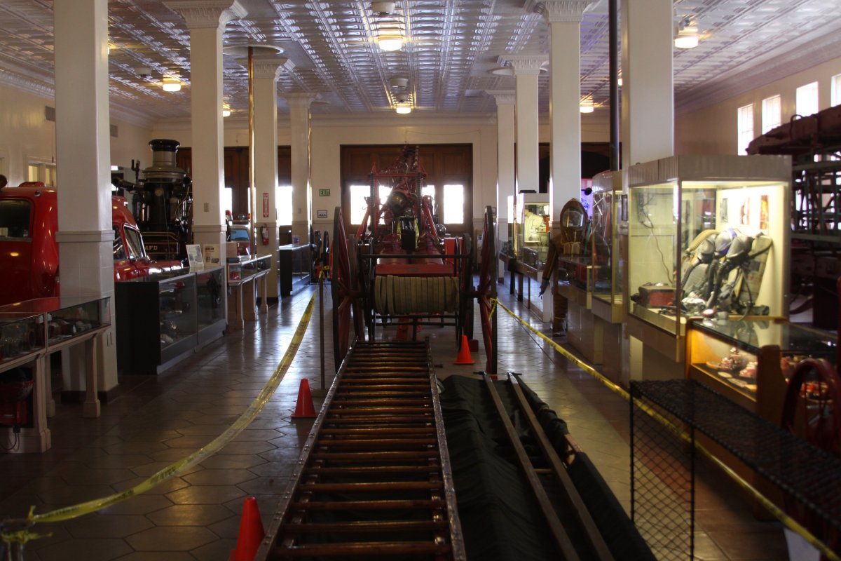 The fire station closed down in 1980 and became “home” to a number of homeless over the years. Fires broke out and the entire station was severely burned at one point. A lot of effort and money went into restoring it and today it is a well maintained building. The original ceiling, floor and fire poles are still in place. The first floor is fairly wide open with plaques and historical photos lining the wall. The second story contains the ‘guts’ of the museum with plenty of firefighting equipment and other historical items.