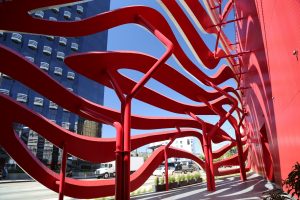 Bergamot Station is located in Santa Monica on site of one of the original Red Line Trolley stops (back when public transportation within Los Angeles was served by trolley cars). This was one of the stops that served between Los Angeles and Santa Monica. Today the station is composed of over 40 galleries and art and design forms – all of which are open to the public without admission. This is an 8 acre site and is Southern California’s largest gallery complex.