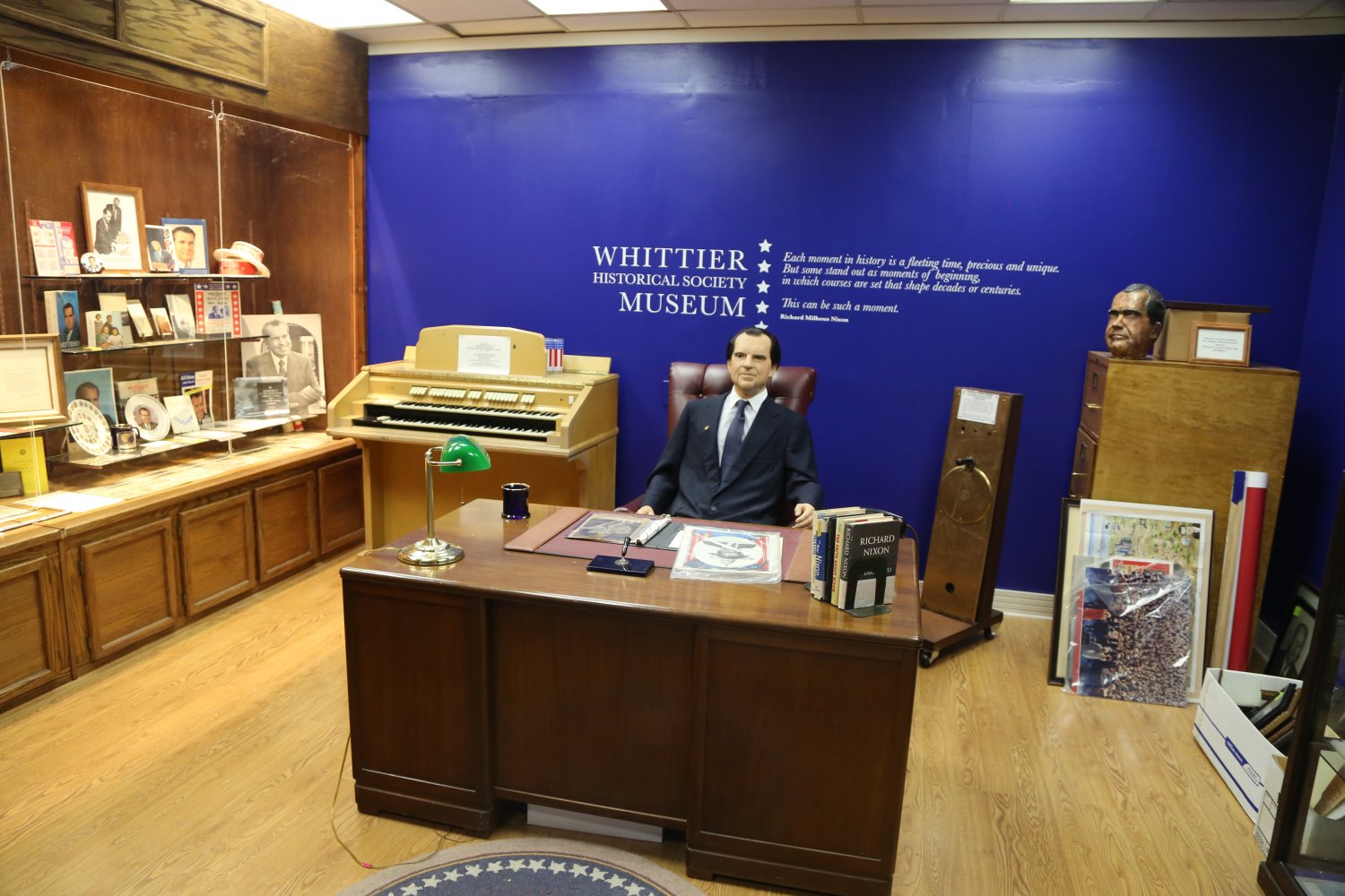 The museum highlights the area’s history ranging from the Harriett Strong’s First Ranch dating from 1867 through to oil discovery in the area to modern day times. The displays are extensive and include a schoolhouse, a church, a replica of the old Greenleaf Hotel and a replica of Whittier’s first fire station. Visitors should not miss the upstairs which contains an exhibit dedicated to President Nixon and an impressive Veterans Wall (honoring local individuals who served in various wars from the Civil War to modern day). President Nixon moved to Whittier with his family when he was age 9 – and helped out in his fathers small grocery store.