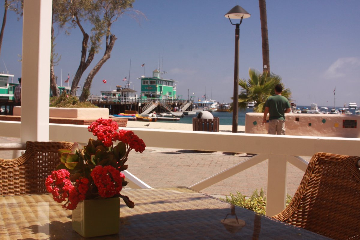 While Avalon is easily walkable – it is hard to beat the location of the Pavilion Hotel. It is located on Crescent Ave directly across from the Avalon Harbor and mere minutes walking from where the Catalina Express docks. Aside from this perfect location – many excellent services add up to create an enjoyable stay. A representative meets you at the dock to carry your bags. iPads are available for use on the property. Every afternoon a complimentary wine and cheese pairing is offered for guests. During a stay here, you don’t want to be anywhere else – after a glass or two of wine, you *really* don’t want to be anywhere else. From the patio, enjoy views of the picture perfect made for a “post card” harbor just beyond the white fence at the entrance to the hotel.