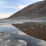 I walked over to the car in the sun (there is no outdoor shade at Badwater, other than from the bathroom as long as you are not here during mid day) reached for a bottle of water, 1/2 empty in the car – sitting in the sun. I poured it over my head without thinking – I screamed out in shock – it was nearly scalding – it was so hot. That was a first time I’ve experienced this before. During the heat of the summer, water in the campgrounds and outdoor faucets comes out not warm but rather HOT!