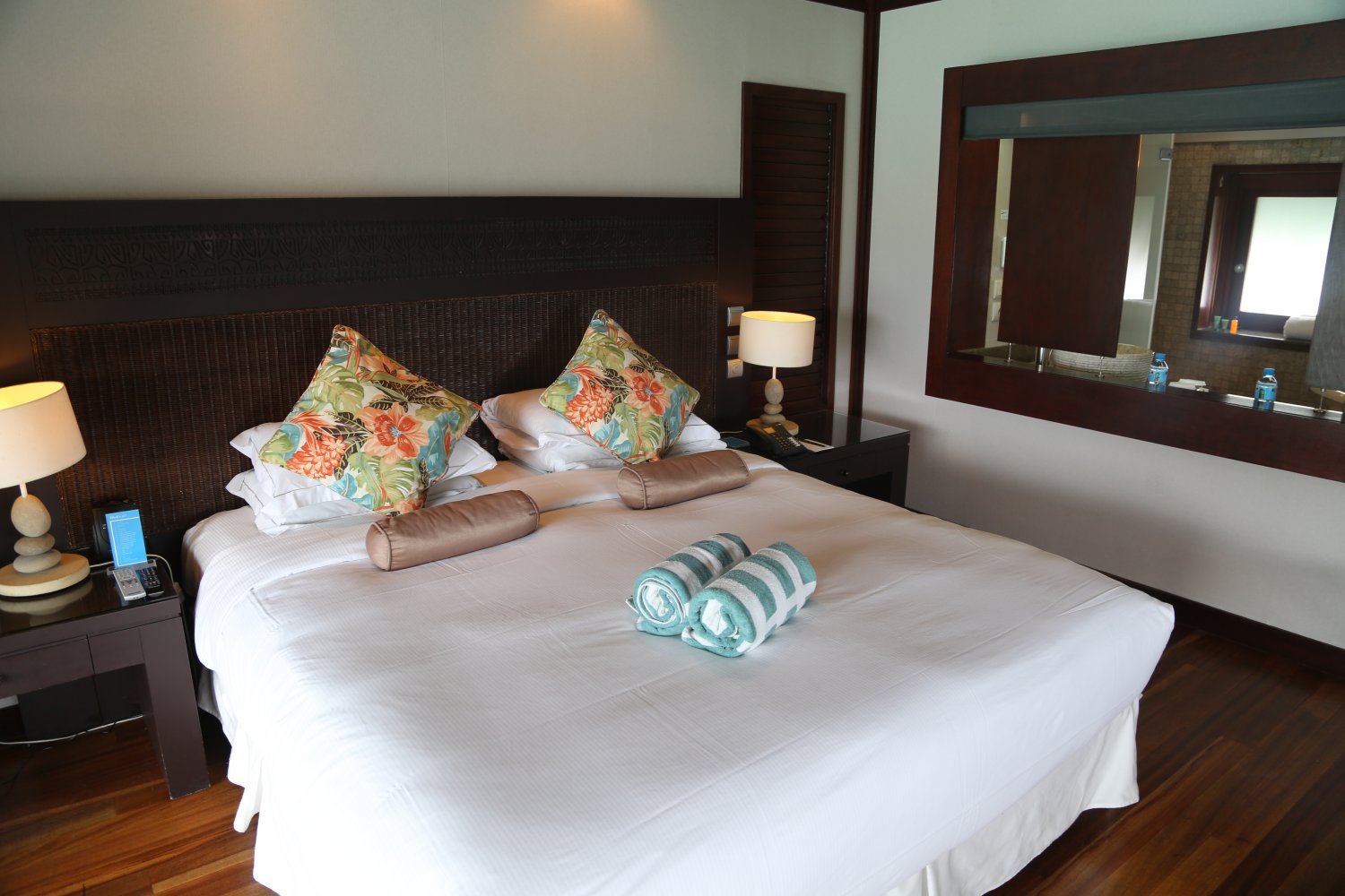 The Hilton Mo’orea Lagoon Resort & Spa opened in 2009 after transitioning from the previous Sheraton ownership – the resort was originally built in the late 1990s. This classy property is one of only four resort properties on the entire island. Guests are welcomed warmly with a tropical fruit drink and a perfumy flower hei necklace.