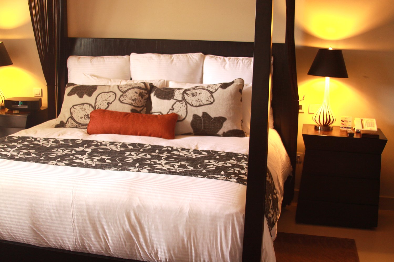 The resort boasts 350 plush suites. The rooms are definitely one of the highlights here – they are very well appointed and furnished – you feel like a king or queen in one of the large beds which are surrounded by an elegant canopy with draw curtains. Too far to walk downstairs to the hot tub – use the one in the room, complete with jets.