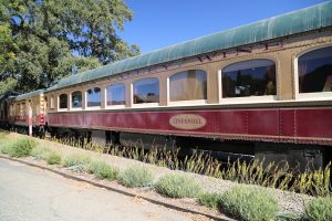 The Napa Valley Wine Train provides a memorable and relaxing 36 mile round trip, 3 hour train ride from the city of Napa to the city of St. Helena. The historical track was laid out in the 1860’s to bring guests up to the small resort town of Calistoga. Much of the journey parallels the main road (Highway 29). While on the train, you are certainly not driving, you can drink, you are not dealing with traffic especially the line-up that invariably develops around the town of St. Helena especially on the summer weekends and you can enjoy a gourmet lunch or dinner. Train versus car in this situation: advantage train!