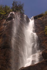 Lovers Leap Ella Waterfall is located about 15 minutes from downtown. There is a small road leading up into the hills past small gardens. This paved road turns into steps built into the hillside and then becomes a small trail which leads to a concrete collecting pool. A very narrow steep trail continues past this up to the actual base of the waterfall. There are no pools deep enough for swimming but the water is very cool and refreshing and there are stellar views looking out over Nuwara Eliya and the surrounding green countryside.