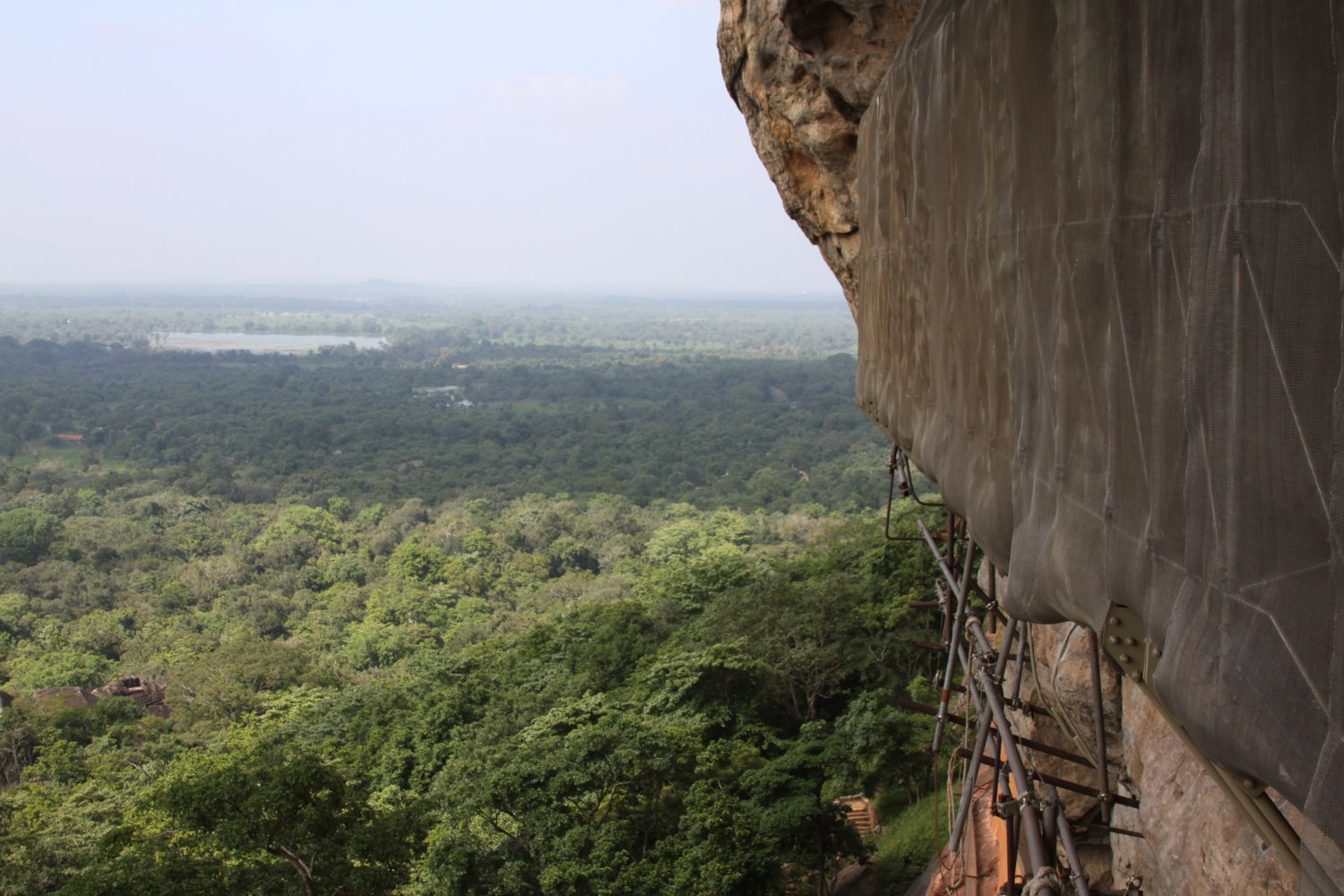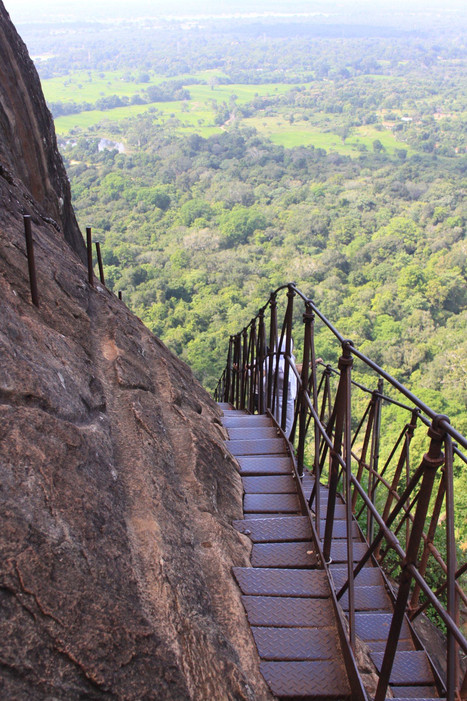 There is one large flat area where you can rest before tackling the metal steps drilled into the almost vertical sides of the rock walls. Early steps that were originally carved directly into the stone can be seen. Be glad you don’t have to climb up using these! There are great views of the green jungle in all directions and you have to really look hard to see any signs of human activity.